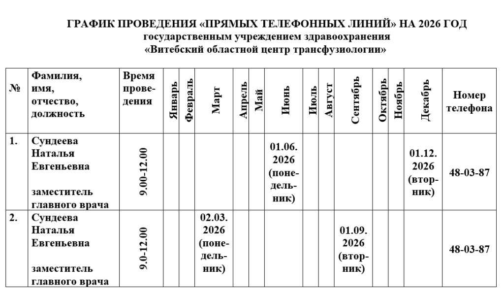 График проведения «Прямых телефонных линий»