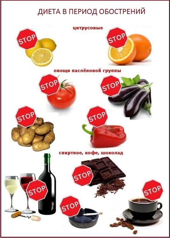 Питание. Придерживайтесь здорового, сбалансированного питания. Ограничьте употребление красного мяса, жирной, острой, солёной и жареной пищи, а также алкоголя и курения.
