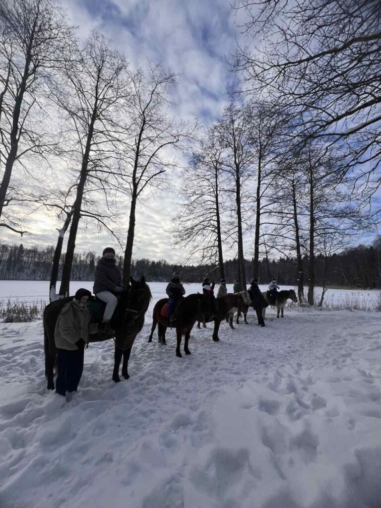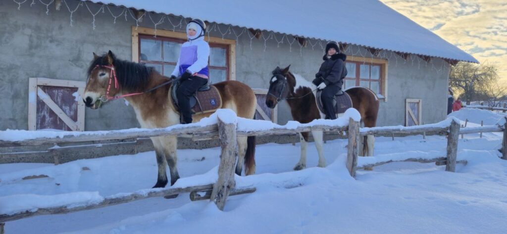 Участники мероприятия получили уникальную возможность прокатиться верхом по заснеженным полям, пройтись по зимним лесным тропам, насладиться общением с близкими и познакомиться с грациозными лошадьми.